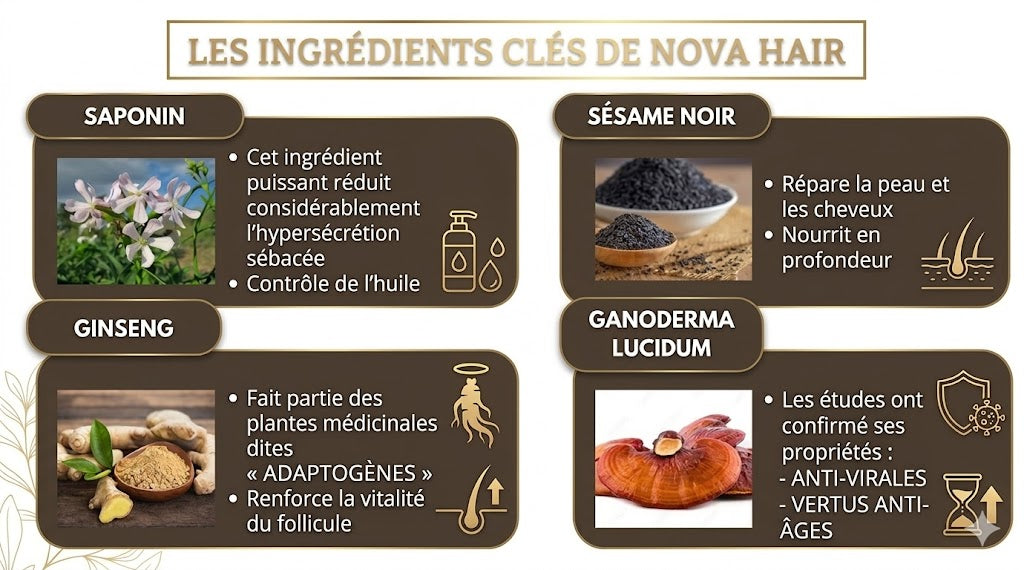 "Ce shampoing Nova Hair a été une super découverte. Mes cheveux gris disparaissent progressivement et je me sens plus confiante avec des cheveux éclatants. Je recommande vivement."